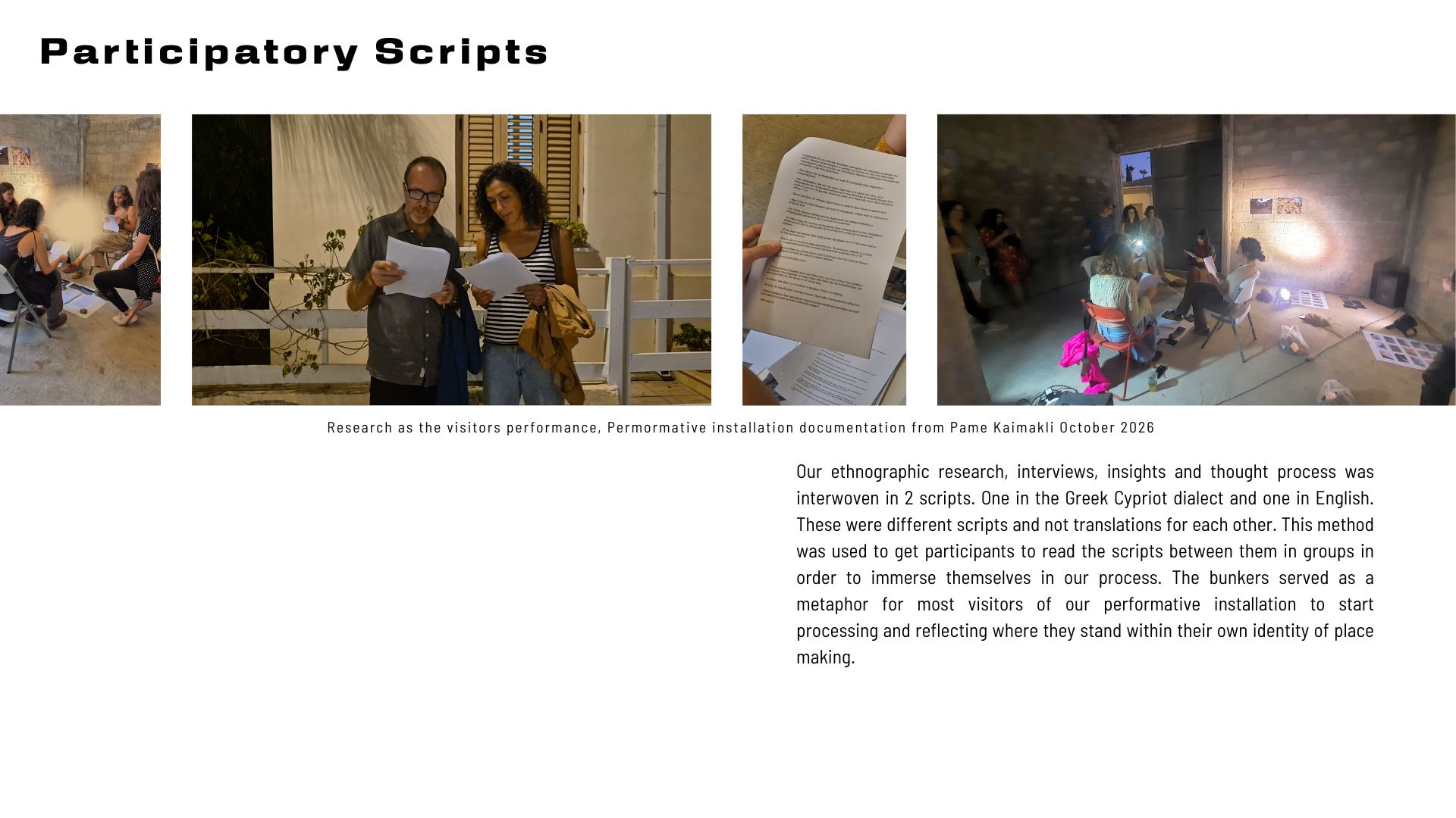 Exhibition catalogue excerpt. Written by Ibrahim Ince and Rosanna O’KeeffeBelow are some slides outlining the artistic practice the duo, Andriana and Sophie, had undertaken for their Pame Kaimakli activation: