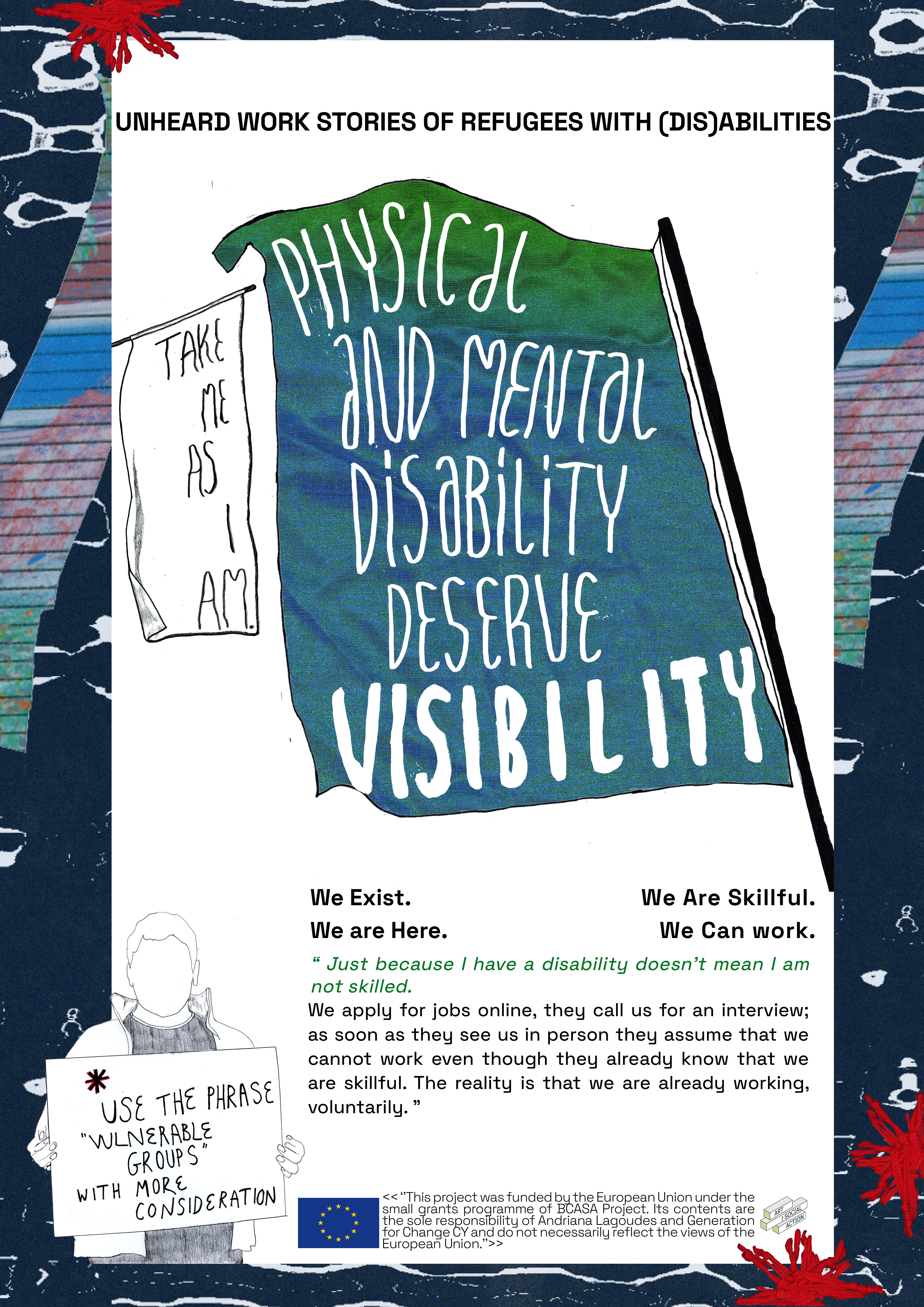 After an in-depth focus group and a series of one to one interviews with selected research participants from a diverse group of refugees employed across various sectors in Cyprus, our team developed a set of narratives and information that made it to the posters’ storyline.