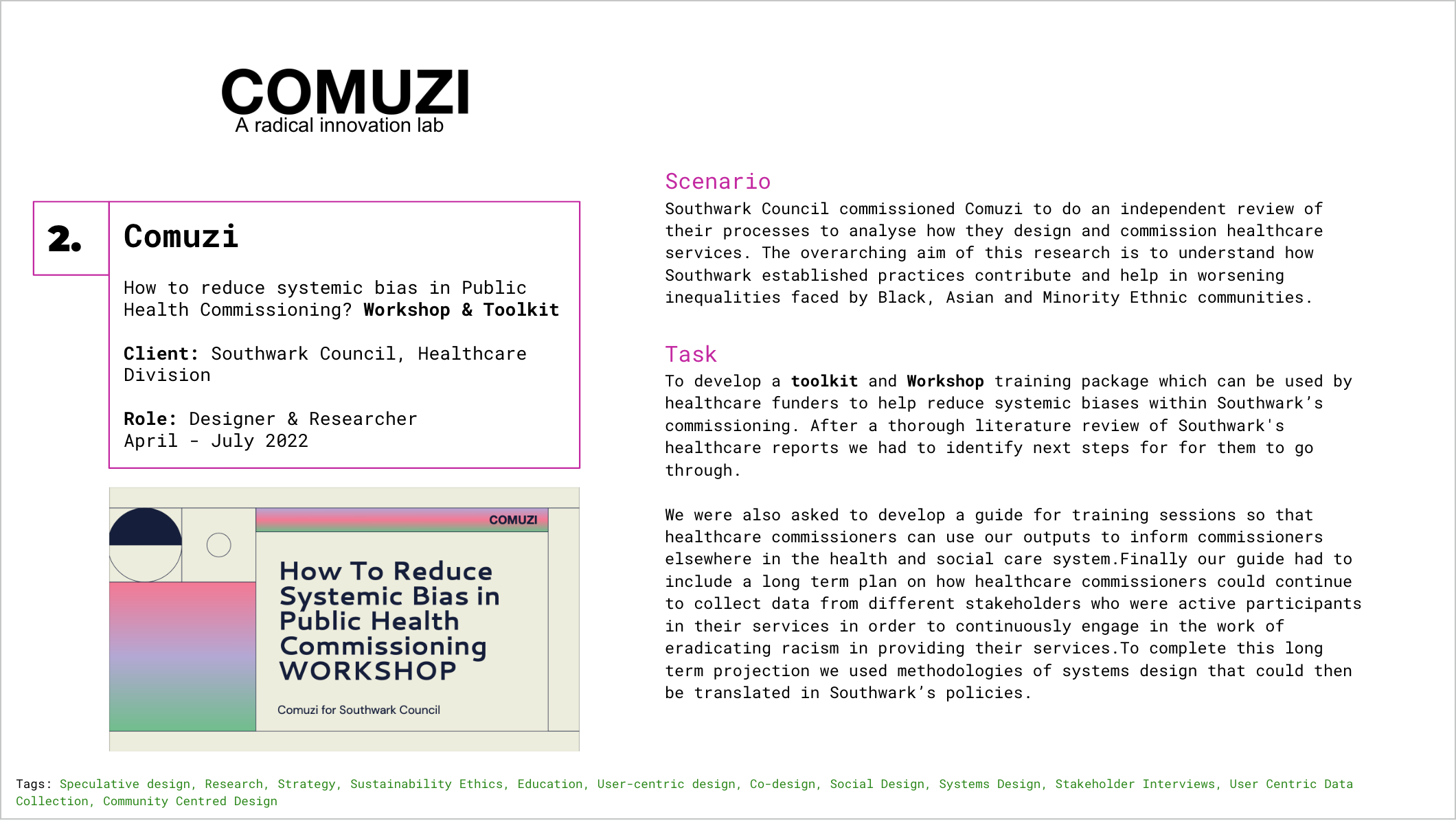 9- How to Reduce Systemic Bias in healthcare funding, A Service Design project by Comuzi for Southwark Council.